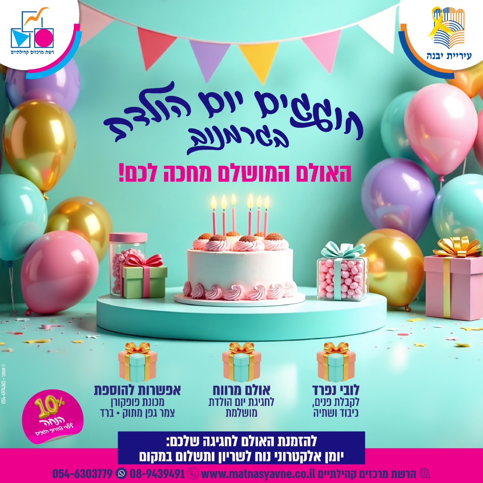- מקום אידיאלי לכל סוגי ימי ההולדת - לילדים, מבוגרים ומשפחות