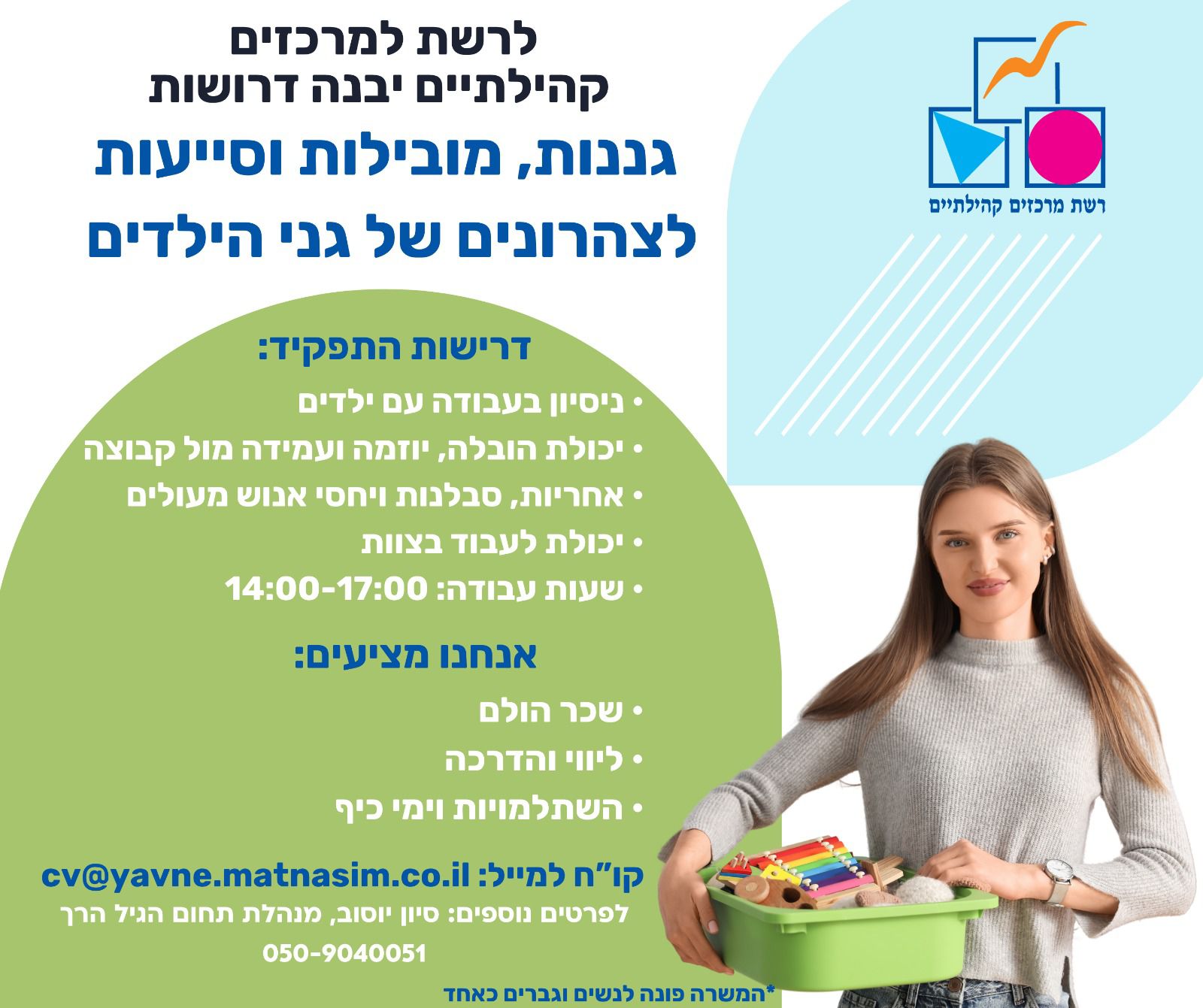 רשת המרכזים הקהילתיים יבנה מחפשת אותך!
